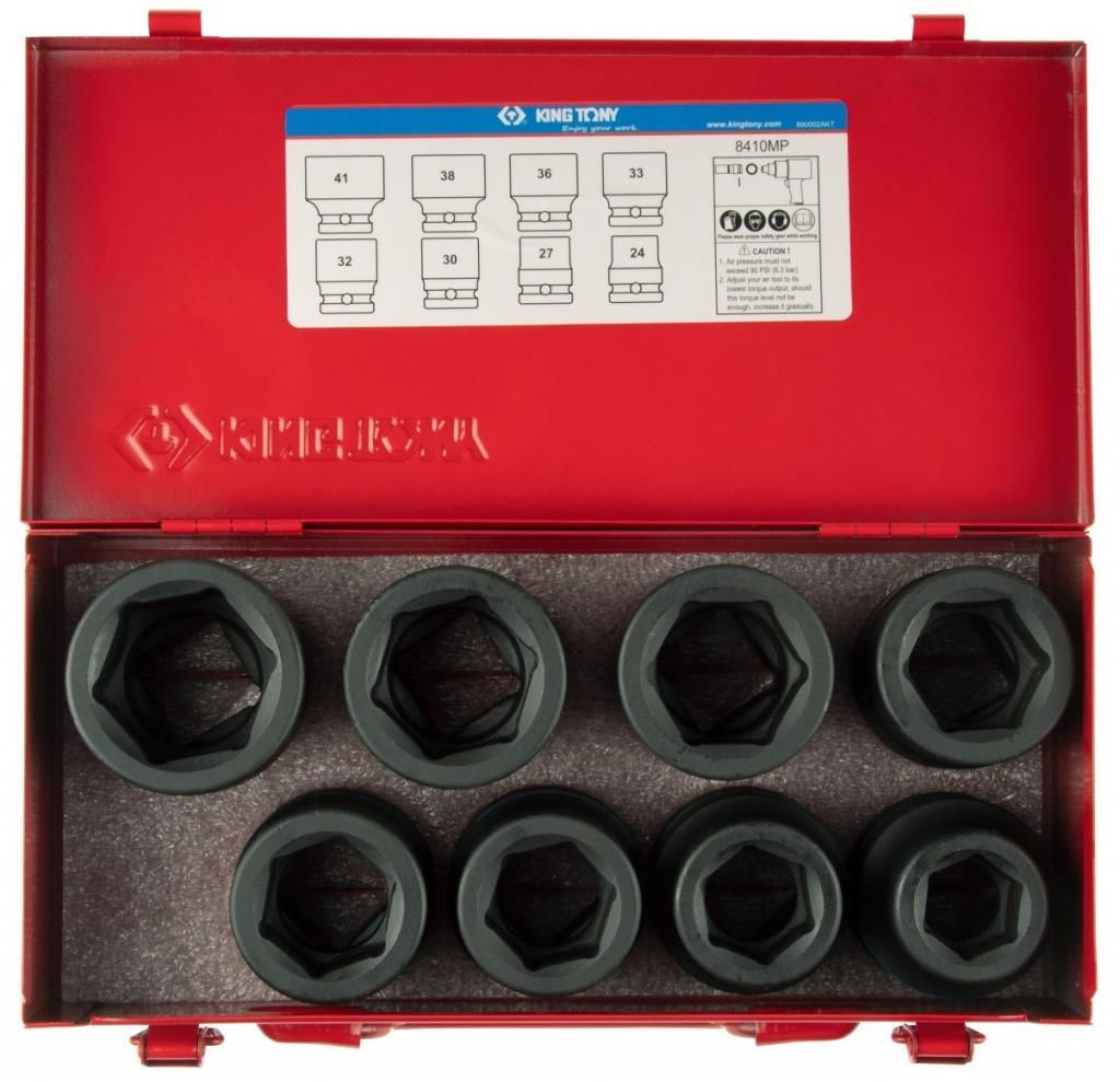 Set de tubulare, bite, duze King Tony 8410MP набор 1" ударных головок, глубоких 24-41мм, 8 пр.
