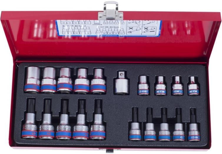 Set de tubulare, bite, duze King Tony 7120PR набор насадок TORX Т10-Т55 и головок Е6-Е20, 1/2" и 3/8", 20 пр.