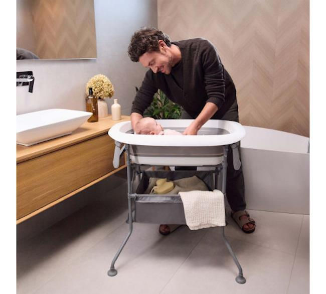 Convertiți rapid dintr-o cadă într-o masă de înfășat. Asamblarea și dezasamblarea durează doar câteva secunde, iar înălțimea ergonomică a suportului permite îngrijirea bebelușului fără a vă apleca.