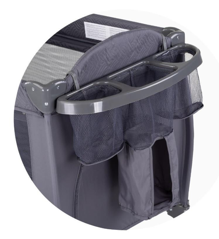 Tip: ţarc-pătuc / Mecanismul de pliere: clapetă / Capacitate maximă de cântărire, kg: 15 / Material: plastic, poliester, metal