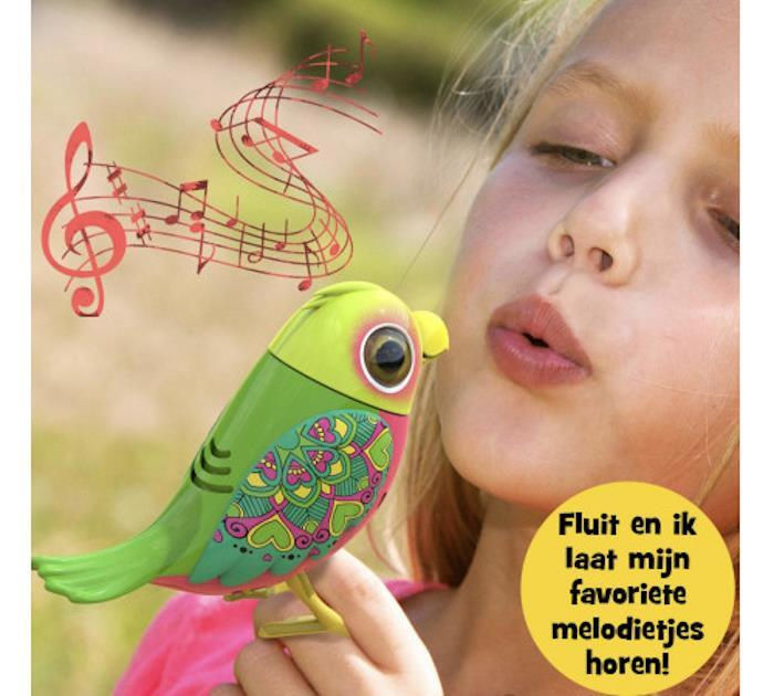 Când îl mângâi, îi vorbești sau fluieră, pasărea dă din cap și ciocul realist. Ei pot cânta! DigiBirds se conectează între ele în modul cor. Ei reacționează și la prezența altor Digibirds. Dacă păsările sunt cu prietenii lor, se pot lega magic, permițându-le să cânte și să se miște ca un cor!