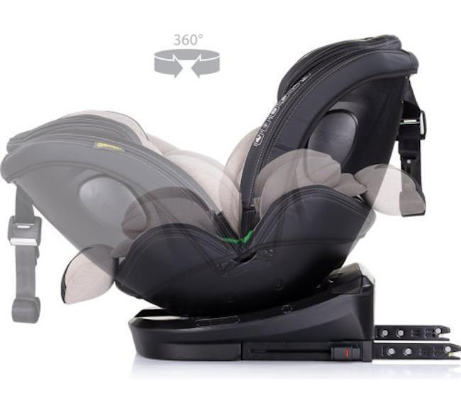Scaunul poate fi fixat la vehicul folosind centuri de siguranță standard pentru copii cu înălțimea de 100–150 cm; Scaunul se rotește la 360 de grade pe baza sa din plastic.