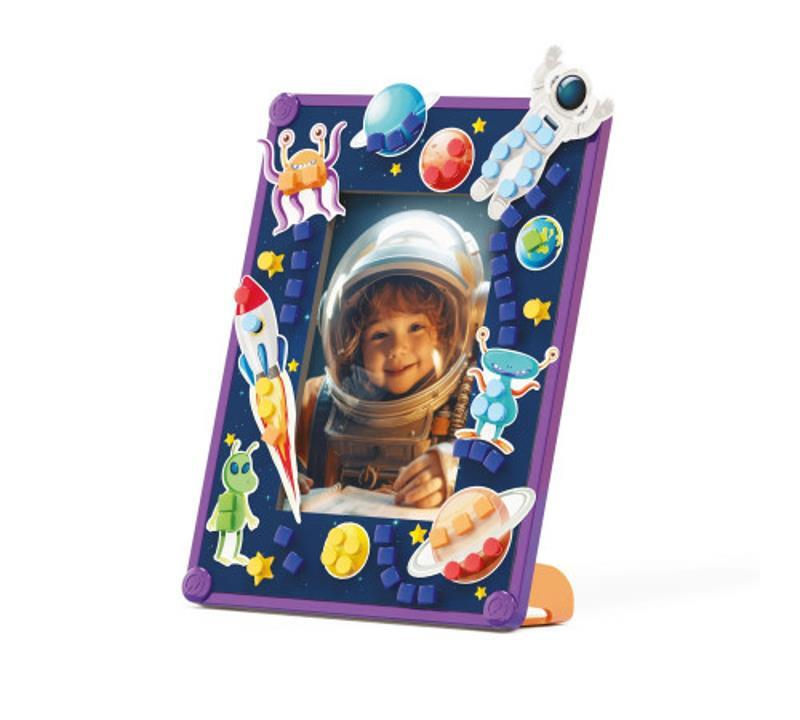 - Componența setului 1 cadru, 2 picioare, 1 suport foto din carton, 1 cadru de burete, 1 foarfecă, 210 ace de 7 culori, rotunde și pătrate, 1 prospect cu rame si ilustratii pentru decupat