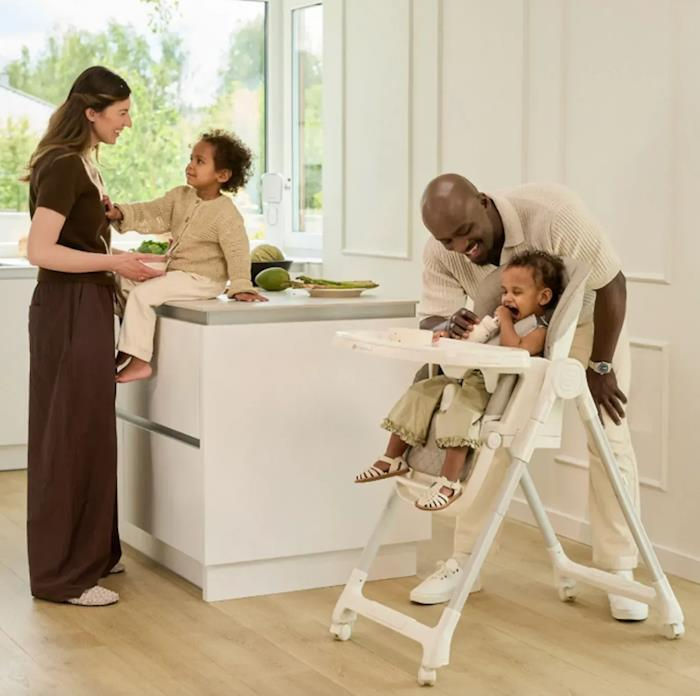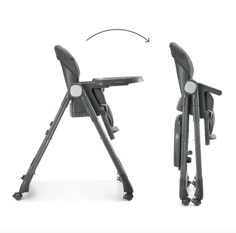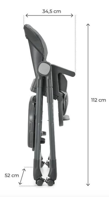 Roțile încorporate cu frâne, un ham de siguranță în 5 puncte și tapițeria moale din PU ușor de curățat asigură confortul și siguranța copilului dumneavoastră. Când este pliat, scaunul înalt este foarte compact, ceea ce îl face ușor de depozitat - ocupă un spațiu minim și se potrivește cu ușurință într-un colț sau într-un dulap.