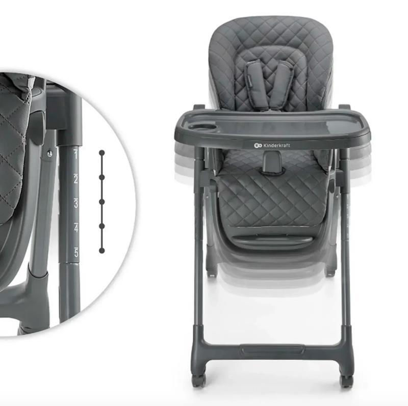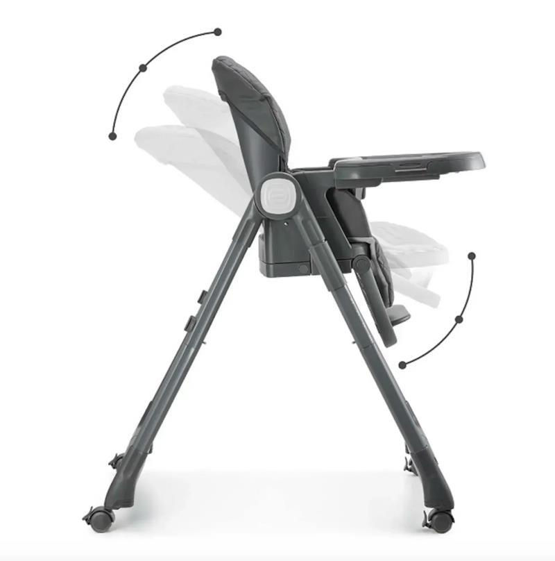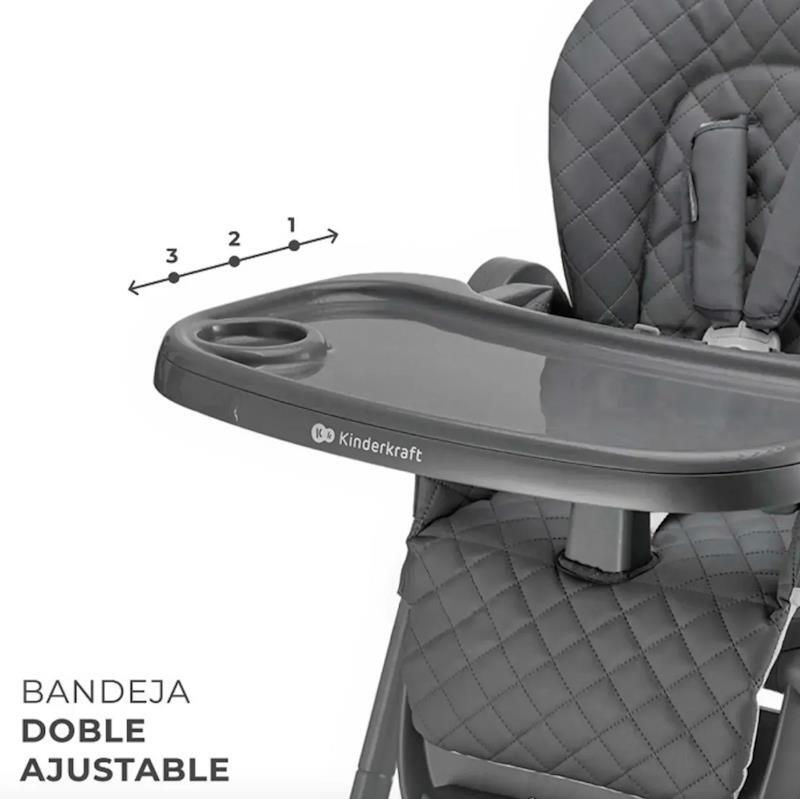 Scaunul are 5 reglaje de înălțime pentru a se potrivi perfect cu orice masă. Cu trei poziții de înclinare pentru spătar și suport pentru picioare, copilul dumneavoastră se va simți confortabil atât în timpul hrănirii, cât și al odihnei. Tava dublă detașabilă, cu trei înălțimi reglabile, este ușor de curățat și poate fi depozitată pe cârlige speciale.