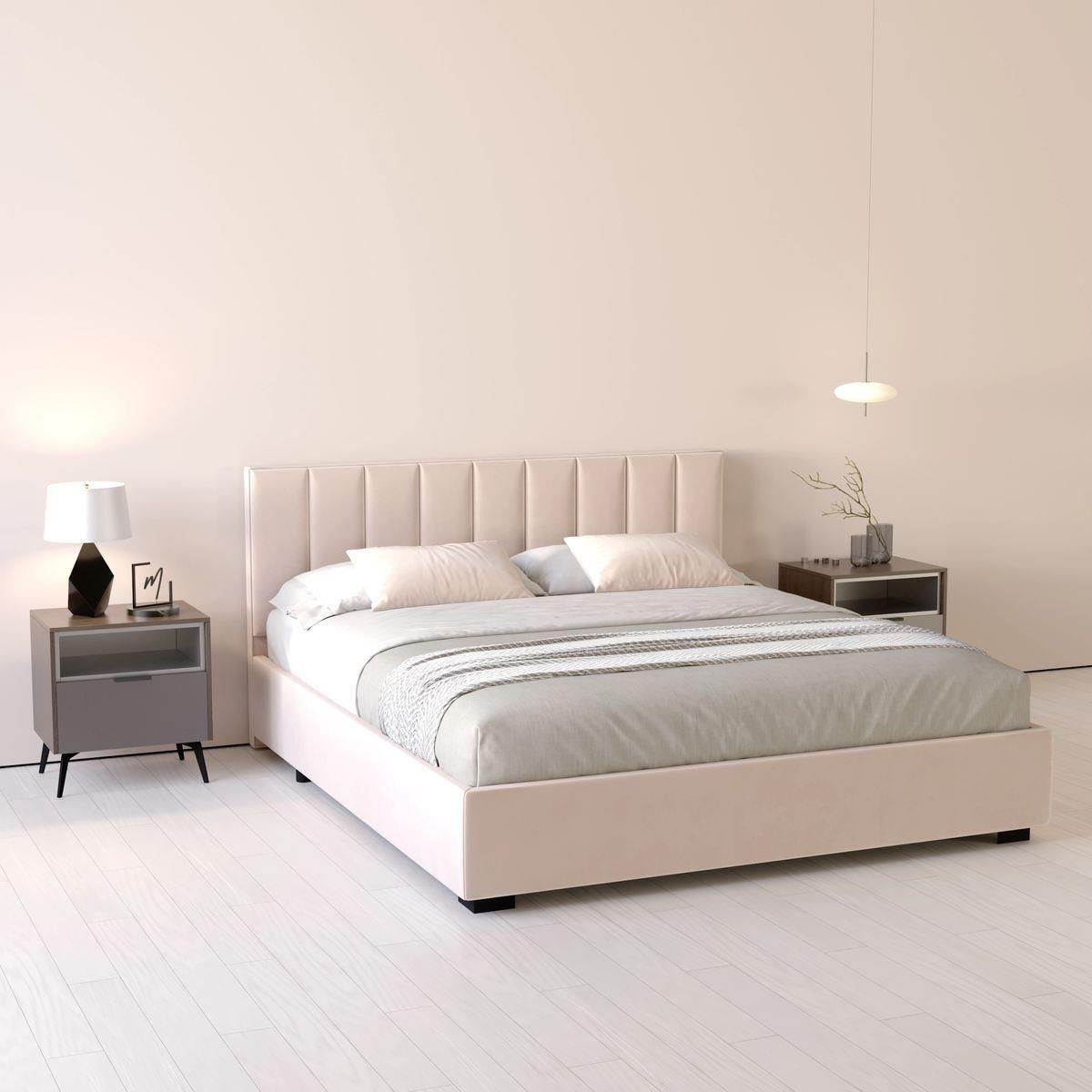 Тип: кровать / Материал корпуса: ДСП / МДФ / фанера / Материал покрытия: ткань / Размер спального места (ДxШ), см: 200x200