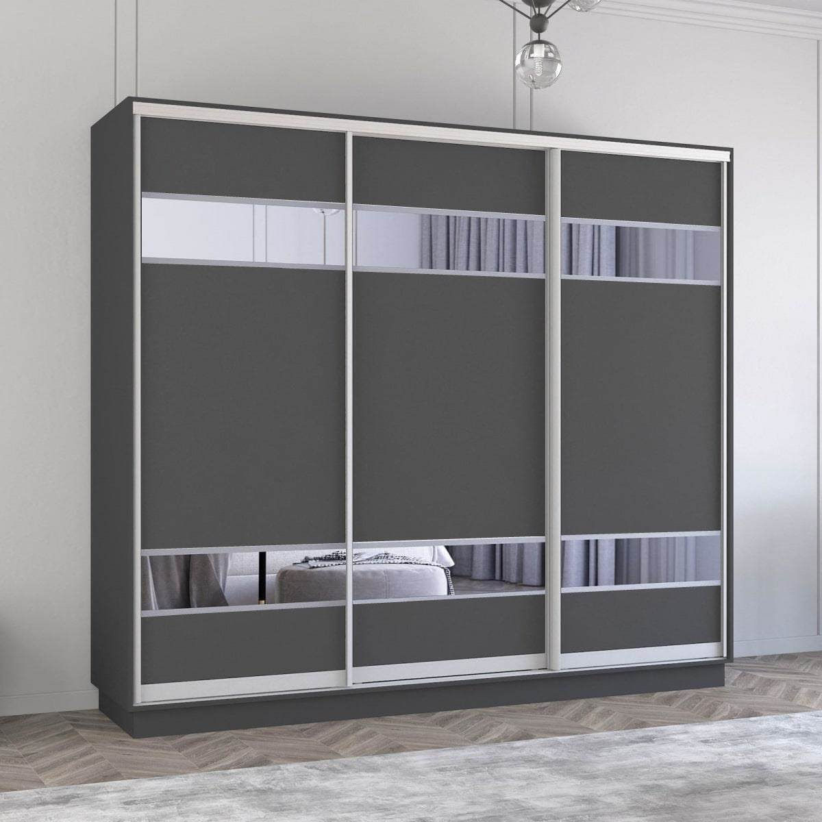 Dulap Mobildor-Lux Fox uși glisante din PAL cu elemente din oglindă (250x60x210H cm) Anthracite