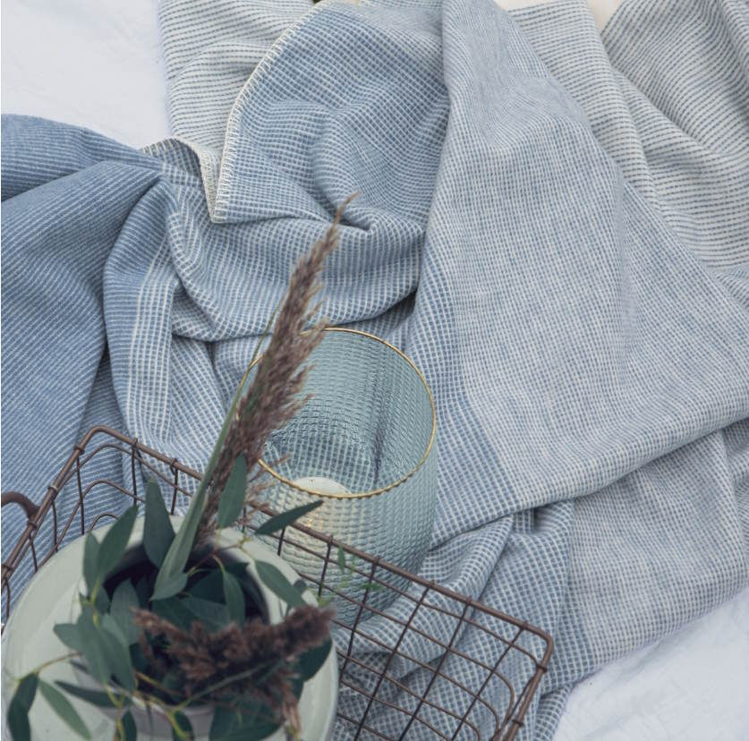 - Model 2296/600 Jacquard Baumwolldecke Salerno mith GOTS Zertifikat Blue/ivory