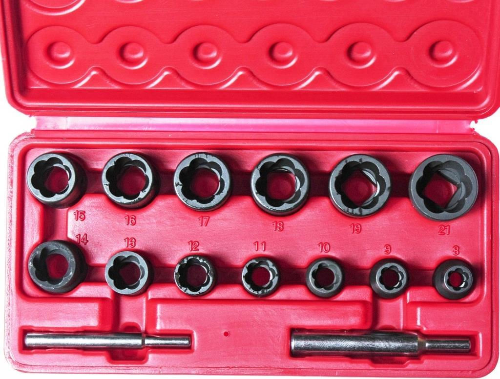 - Model JTC-1321S Набор головок для извлечения повреждённых болтов и гаек, 15 предм.