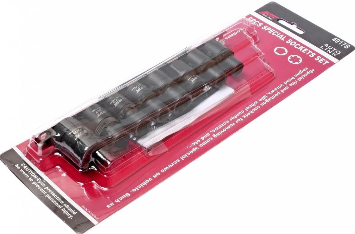 - Model JTC-4917S Набор спец. головок 1/2", RIBE: M6S, M8S, M10S, M12S; 5 гран.: 10, 12, 14, 19 мм (8 ед.)