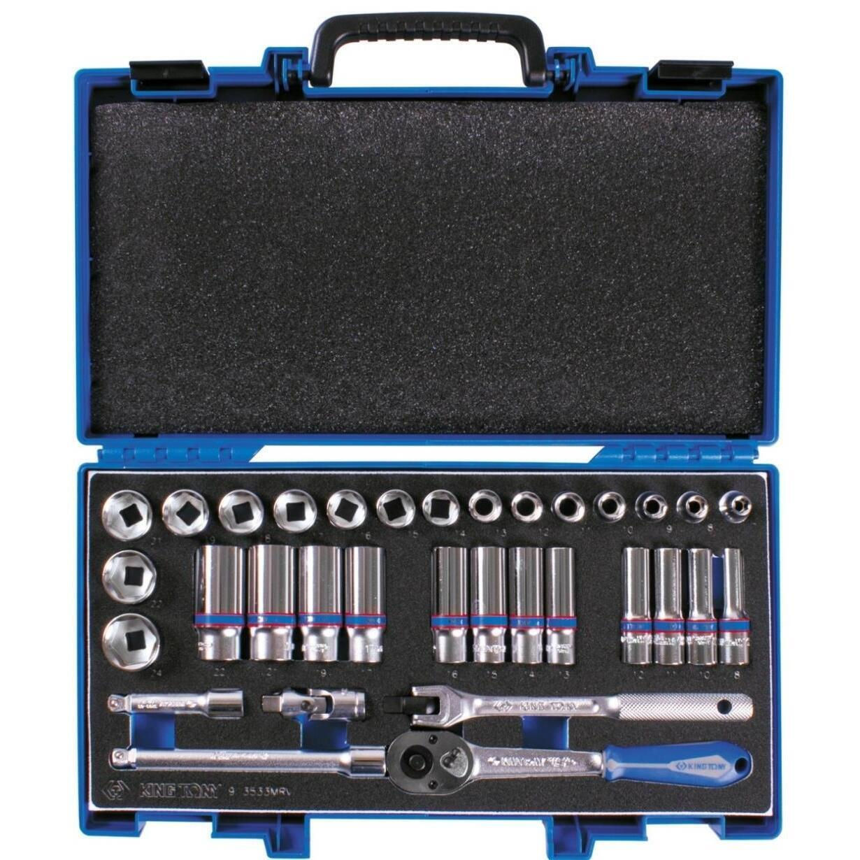 Set de unelte de mână King Tony 3533MRV Set de chei tubulare de 3/8", 6 puncte, accesorii, 33 buc.