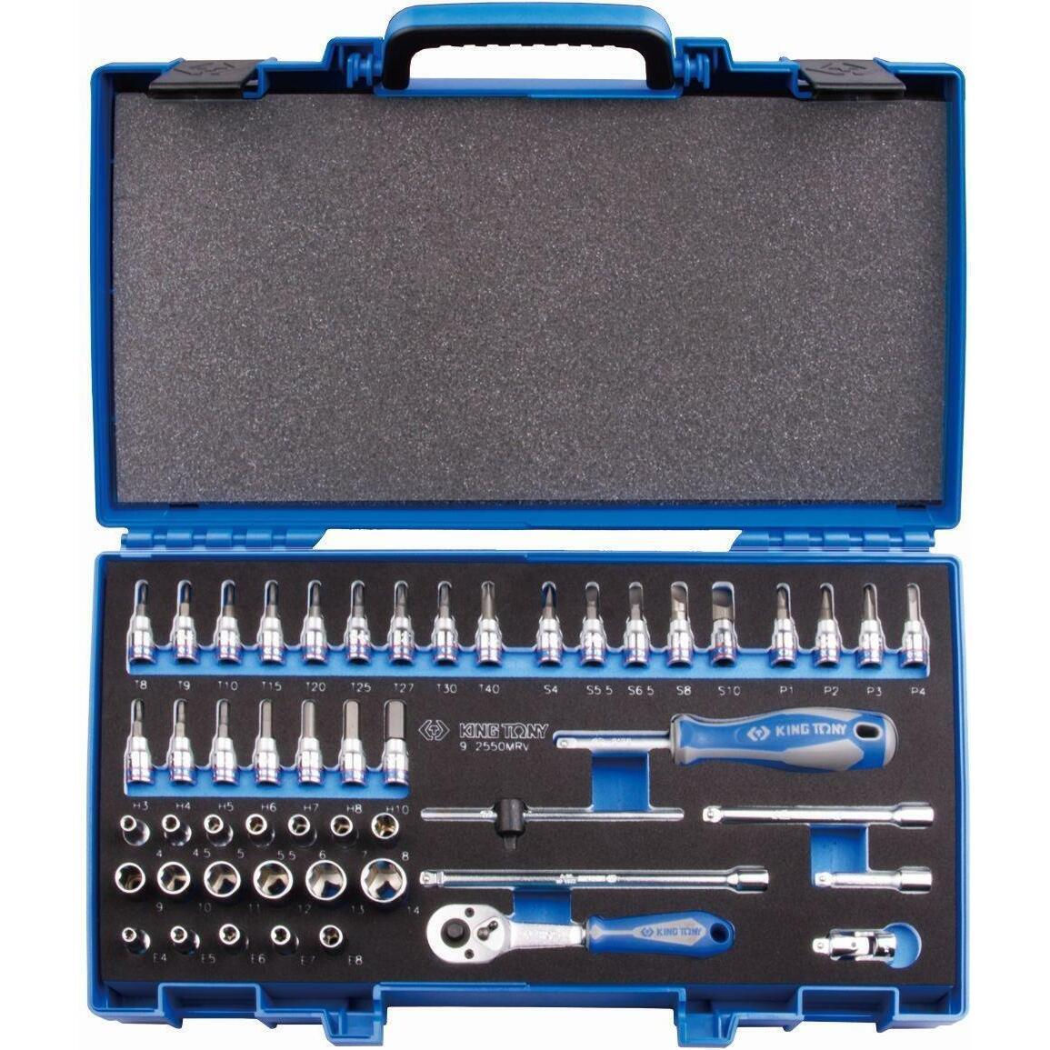 Set de unelte de mână King Tony 2550MRV Set chei tubulare cu 6 vârfuri de 1/4", biți TORX/HEX/PH/PL/PZ și accesorii, 50 buc.