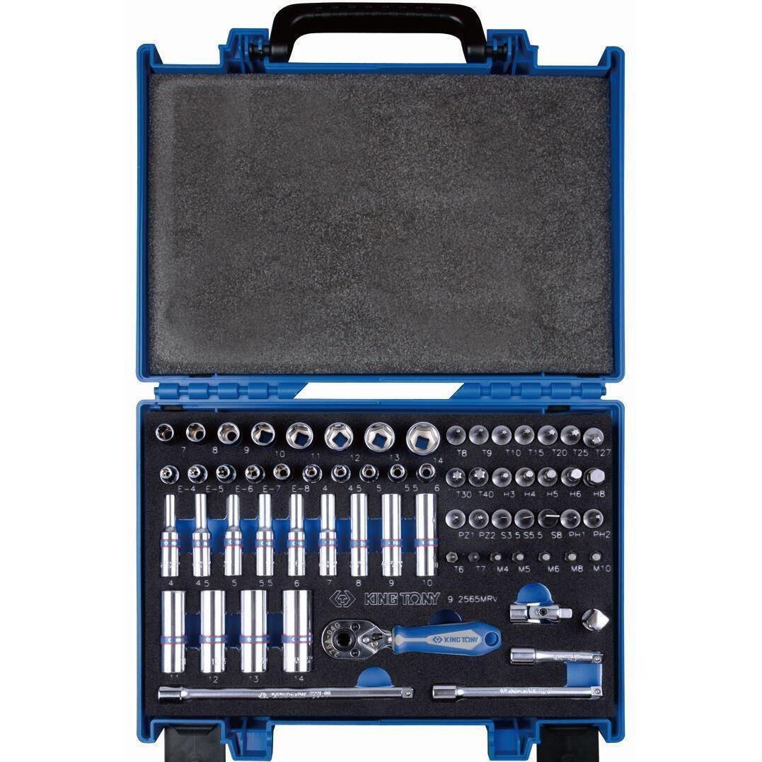 Set de unelte de mână King Tony 2565MRV Set chei tubulare cu 6 vârfuri de 1/4", inserții pentru biți și accesorii, 65 buc. (SPUMA) într-o cutie