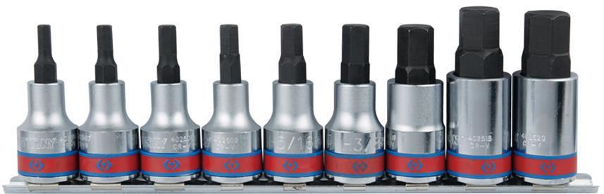 - Model 4110SR10 набор насадок HEX дюймовые H3/16-H5/8 дл.60мм 1/2", 9 пр.
