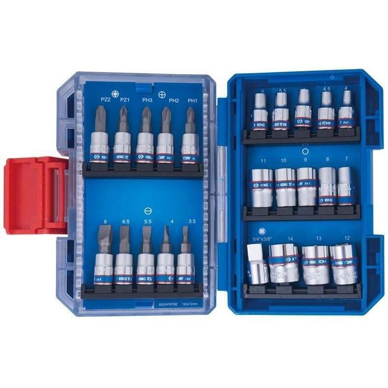 Set de tubulare, bite, duze King Tony Set 2547MR-EB de chei tubulare, biți și adaptoare tip E de 1/4", 47 buc.