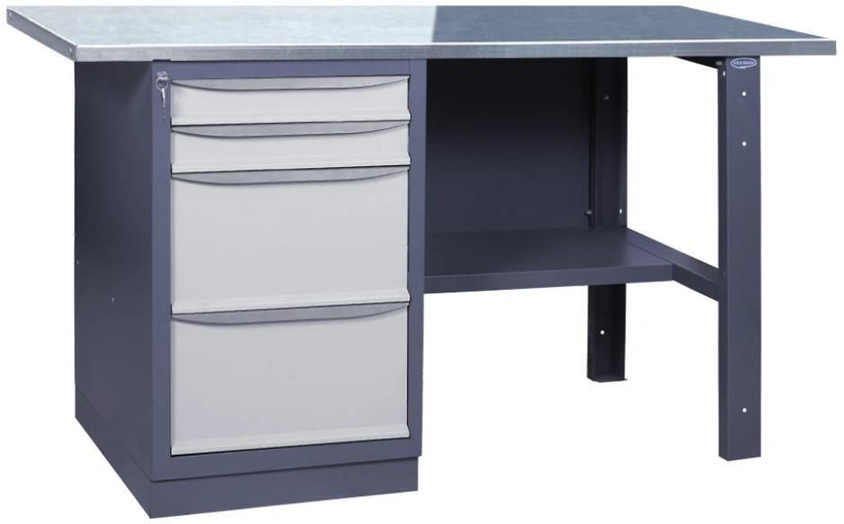 - Model 21 2М2Б О Верстак рабочий 120см (1 тумба, 4 ящика) столешница оцинковка 2мм