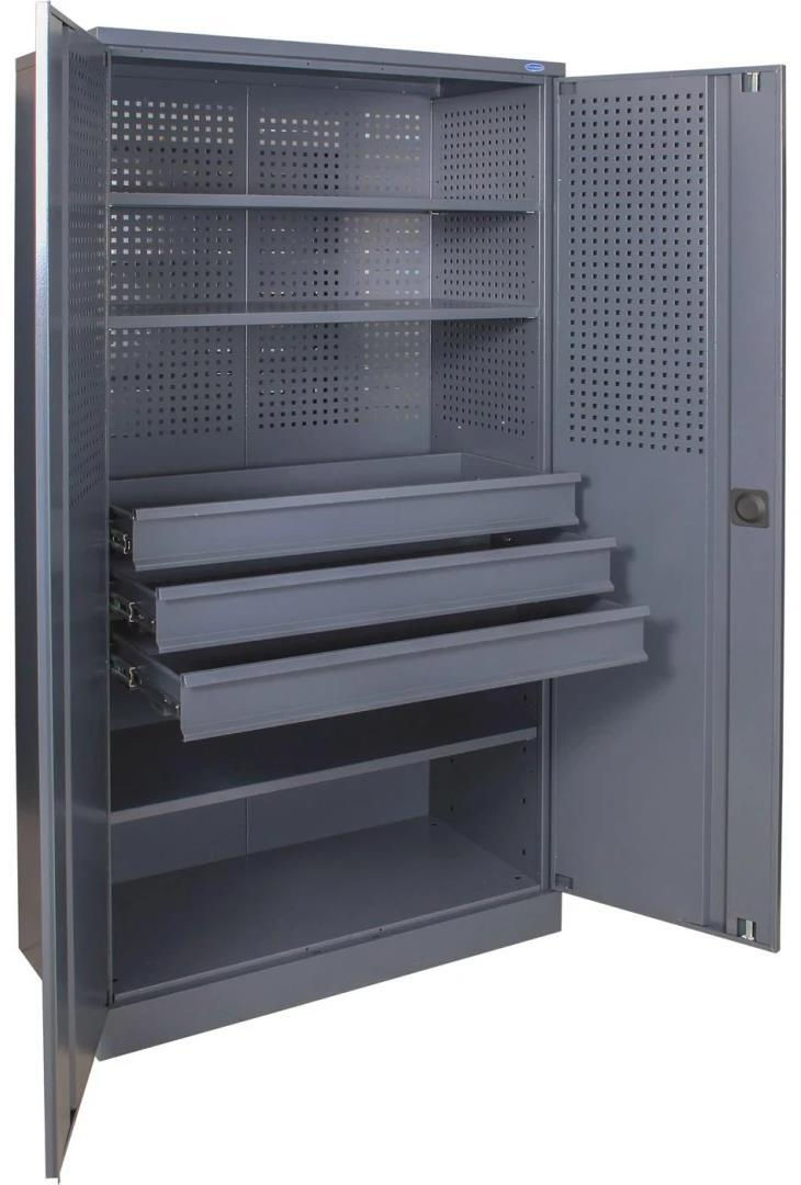 - Model ШИ-10/3П/3В Шкаф инструментальный, перфорированный (1970х1000х500мм) (3 полки+3 ящика)