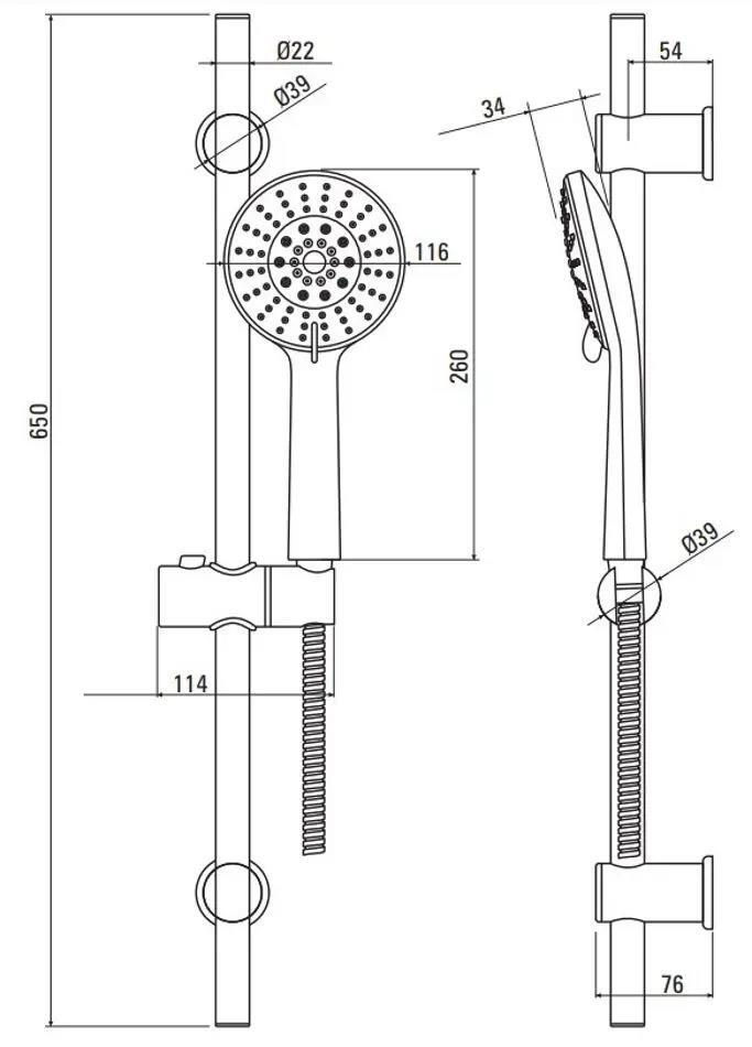 Tip: set pentru duș / Tip montaj: pe perete / Scopul: pentru duș / Material carcasă: metal / plastic
