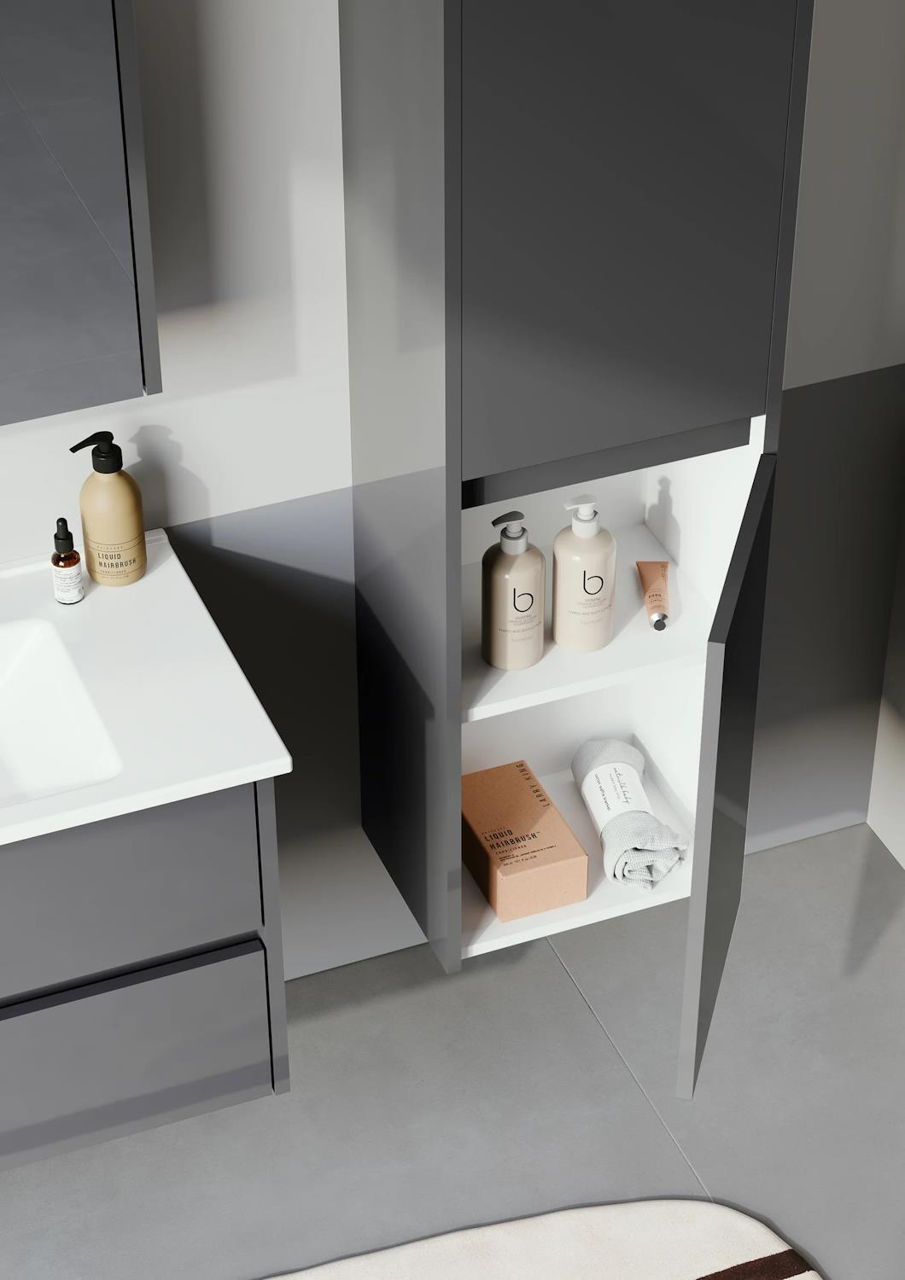 Tip montaj: suspendat / Material fațadă: MDF / Culoare fațadă: gri / Material carcasă: MDF