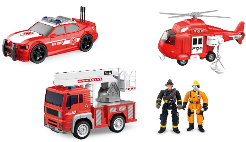 - Componența setului 1 mașină de pompieri / 1 elicopter / 1 automobil