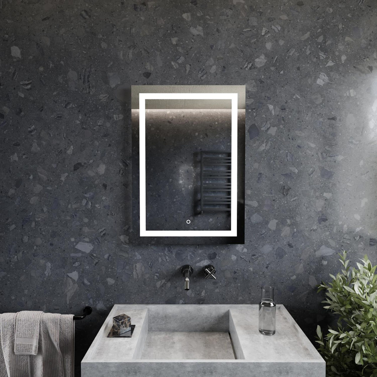 Tip: oglindă / Tip instalare: pe perete / Întrerupător: senzorial / Iluminare de fundal tip LED: da