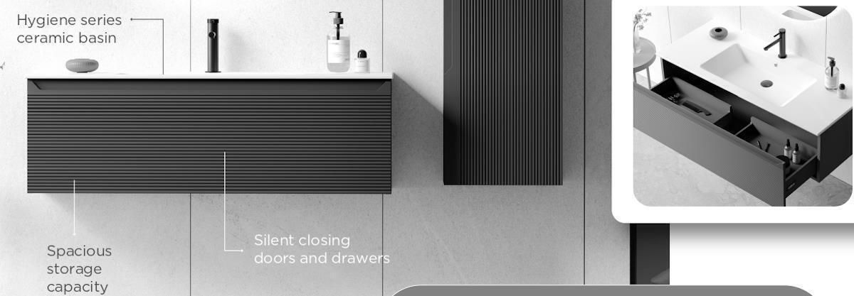 Lavoar în set: da / Tip montaj: suspendat / Material fațadă: MDF / Culoare fațadă: antracit