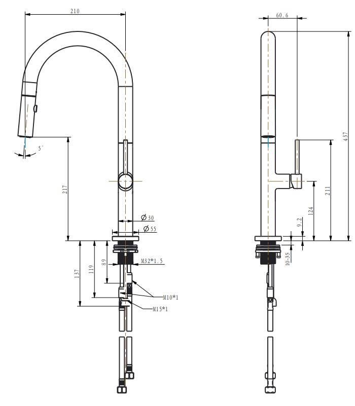 Tip: monocomandă / Tip montaj: pe chiuvetă / Scopul: de bucătărie / Material carcasă: inox