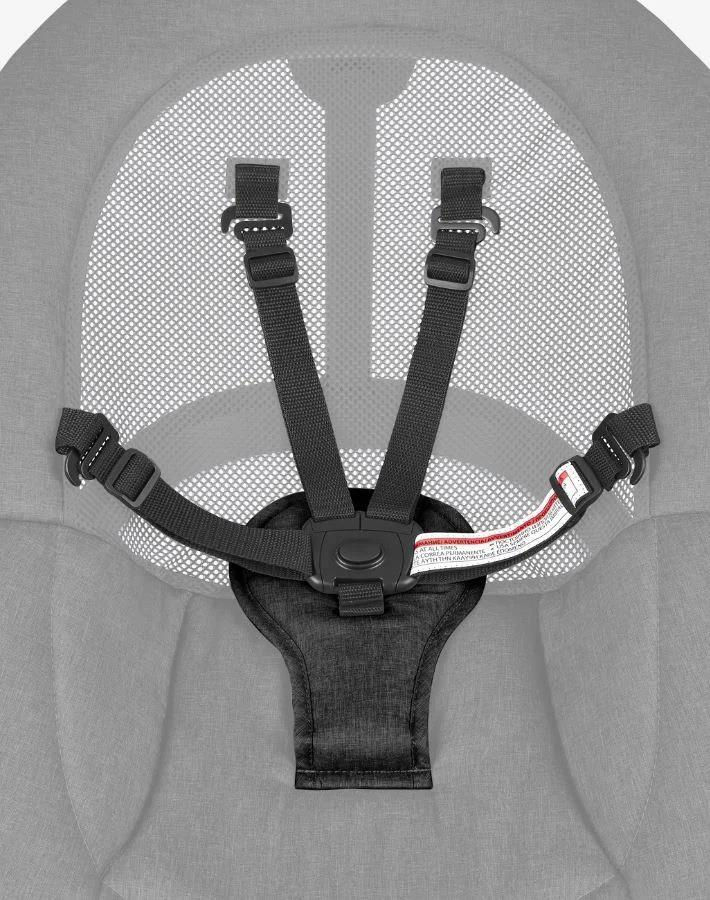 Cadru din oțel durabil, ham de siguranță în 5 puncte, picioare antiderapante;