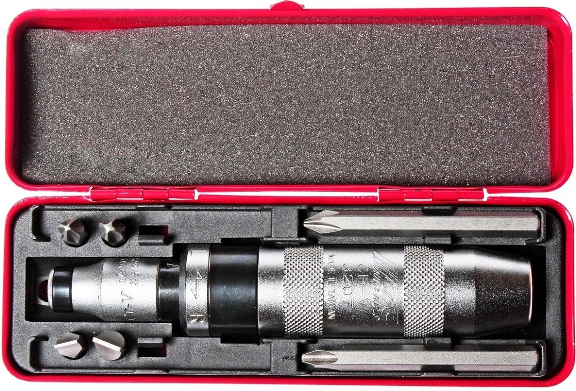 - Opțiuni 4 biți x 36 mm: PH2, PH3, SL 8 mm, 10 mm; 2 biți x 80 mm: PH2, PH3