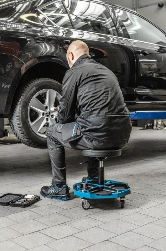 Tip: pat pentru mecanic auto / Material: metal / plastic / Culoare: negru / albastru închis