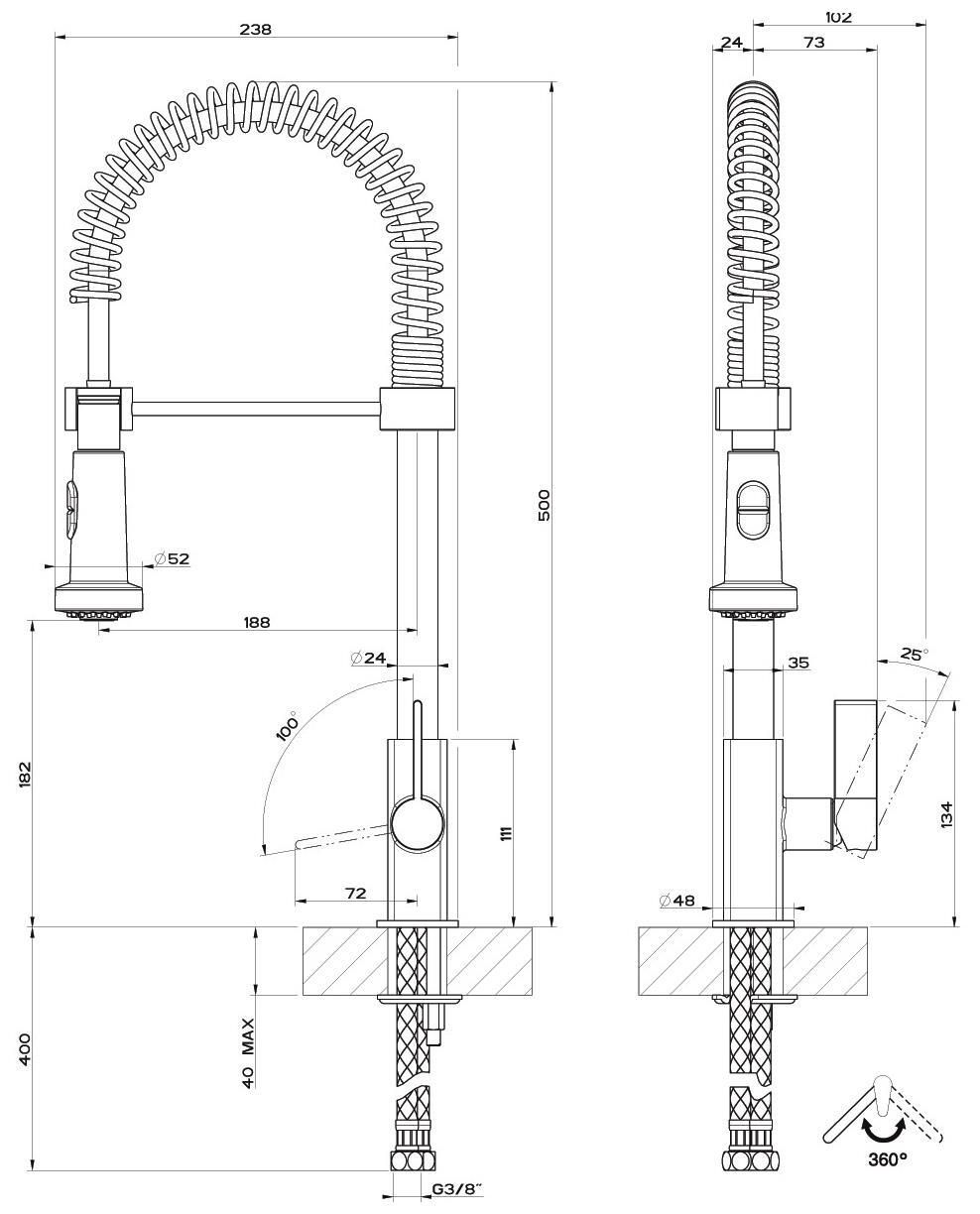Tip: monocomandă / Scopul: de bucătărie / Material carcasă: inox