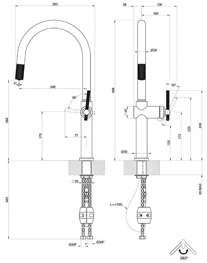 Bateria bucătărie Gessi 60672-707 Habito Black Metal Brushed PVD