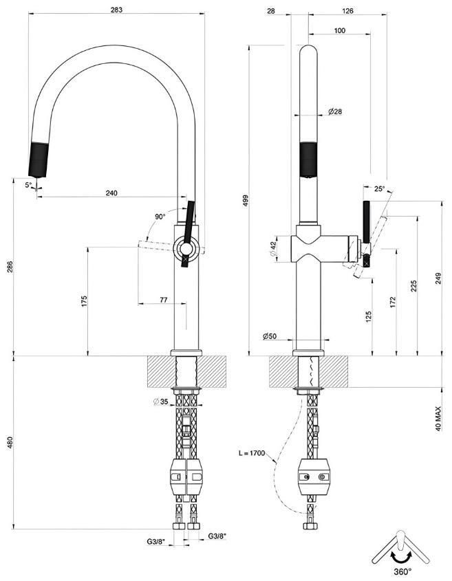 Bateria bucătărie Gessi 60672-031 Habito Chrome