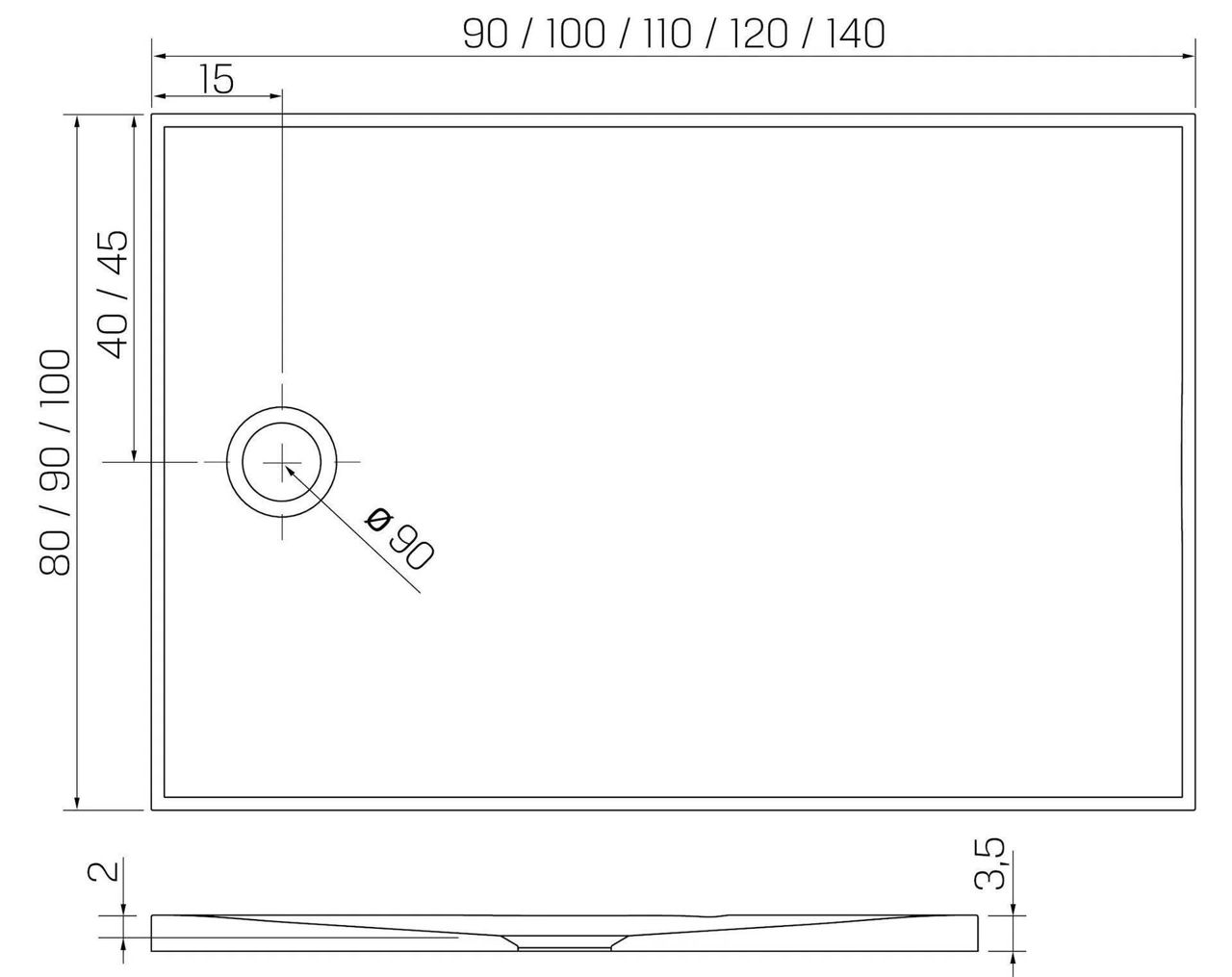 - Diametru gaurei de scurgere, mm 90