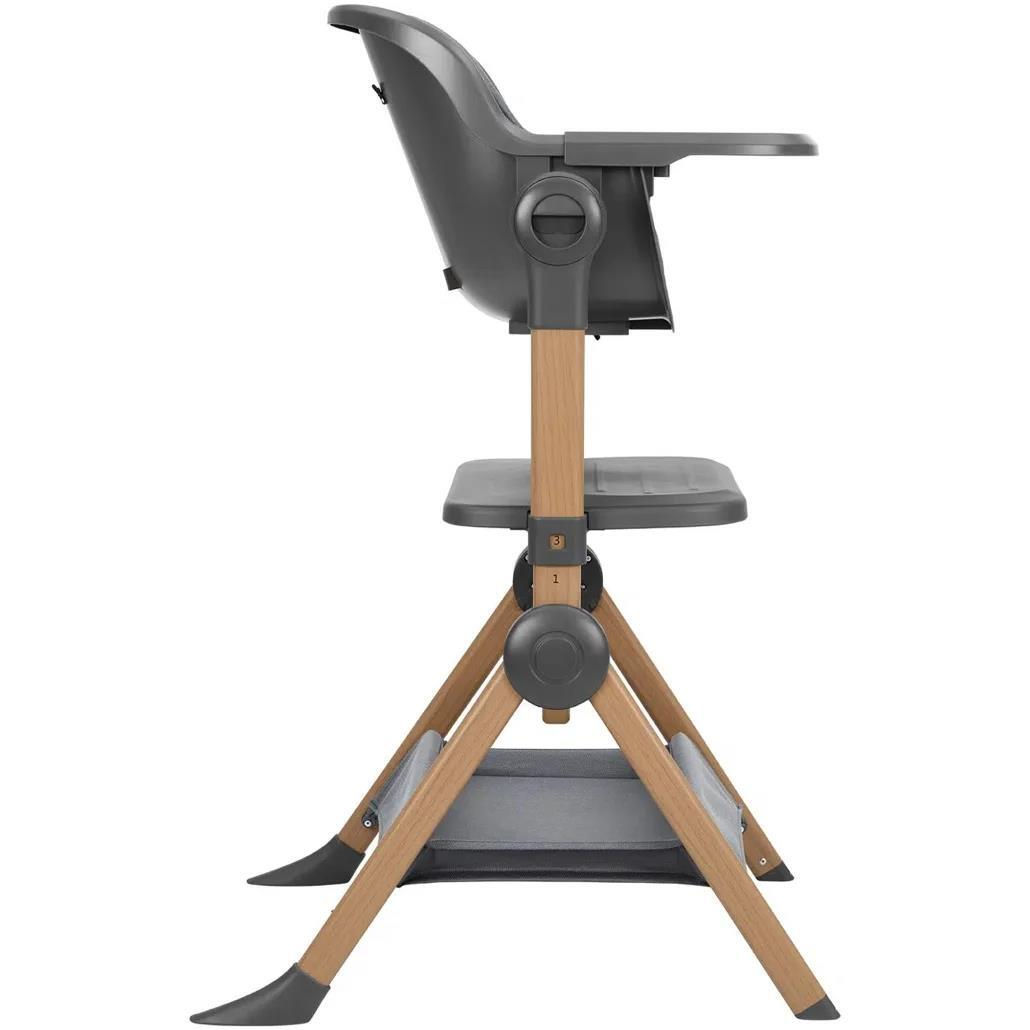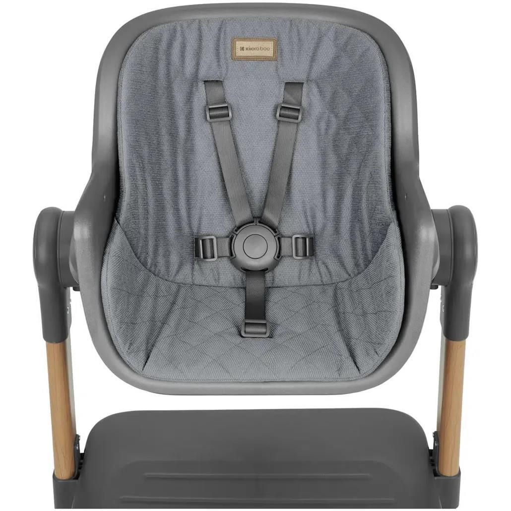 Scaun înalt: Pentru copii de până la 3 ani (max. 15 kg), cu reglare a înălțimii în 3 poziții, tavă reglabilă (2 poziții), husă moale și ham de siguranță în 5 puncte.
