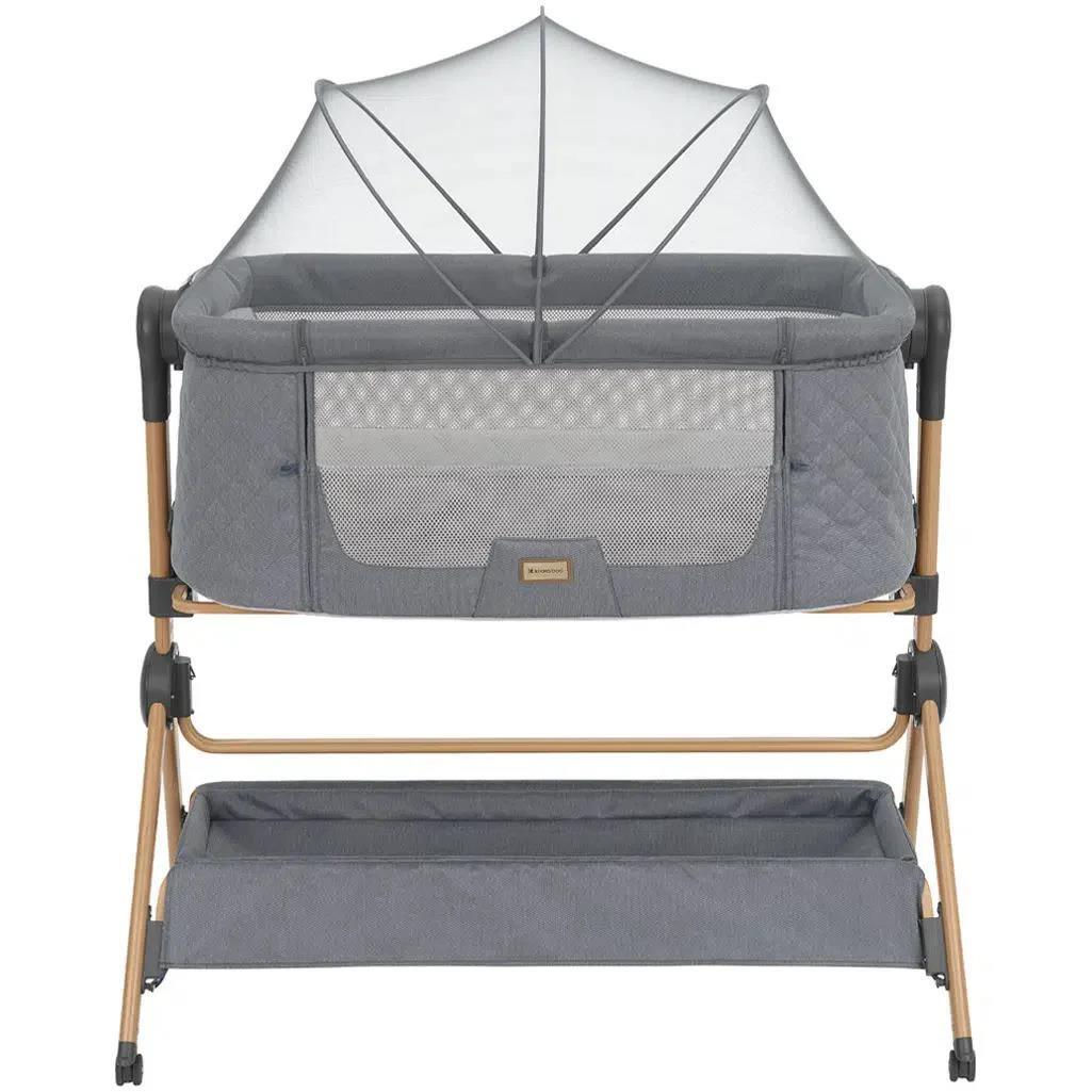 Confort sporit: saltea moale de 3 cm grosime, plasă de țânțari, compartiment de depozitare și 4 roți cu frâne pentru o mișcare ușoară.