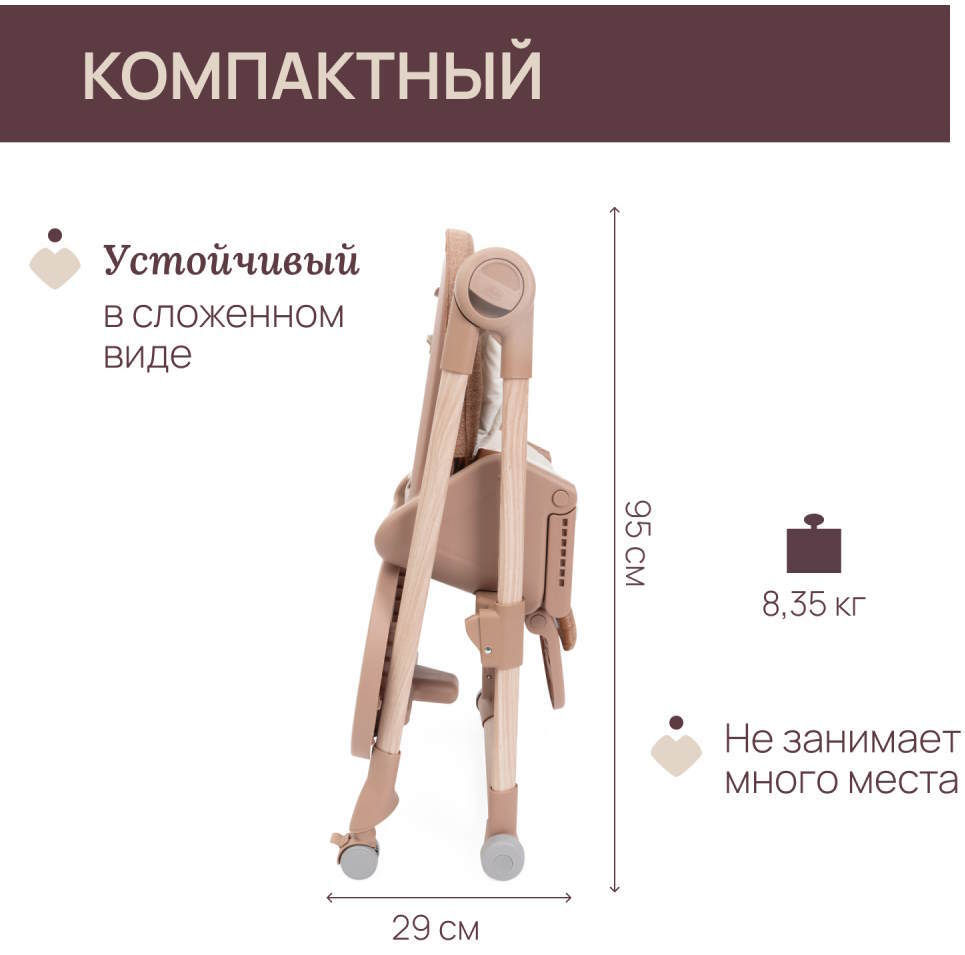 Pentru nou-născuți, este un balansoar, un scaun înalt de la 6 luni și un prim scaun pentru activități creative și alte activități importante de la 3 ani.