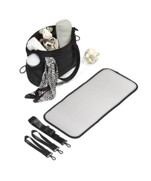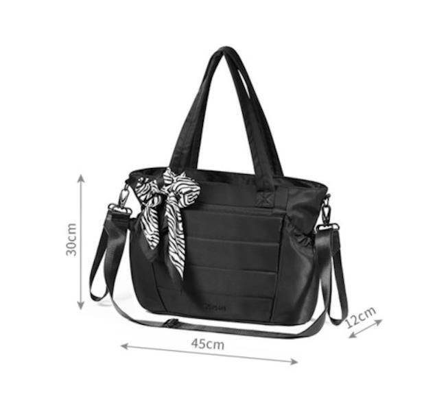 3 tipuri de mânere – Curele laterale detașabile pentru agățarea pe cărucior, o curea de umăr reglabilă și mânere de transport. Mânerele mai lungi vă permit să transportați geanta peste umăr.