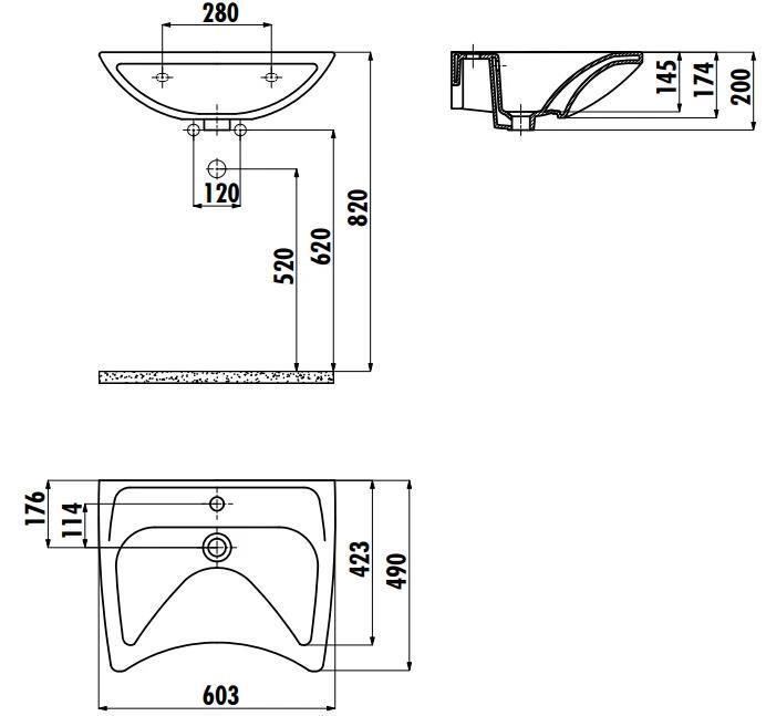 Materia primă: ceramică / Lăţime, cm: 60 / Adâncime, cm: 49 / Culoare: alb