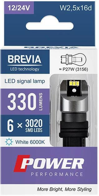 Lampă auto Brevia P27W (3156) 330Lm 6x3020SMD 12/24V CANbus, 2buc