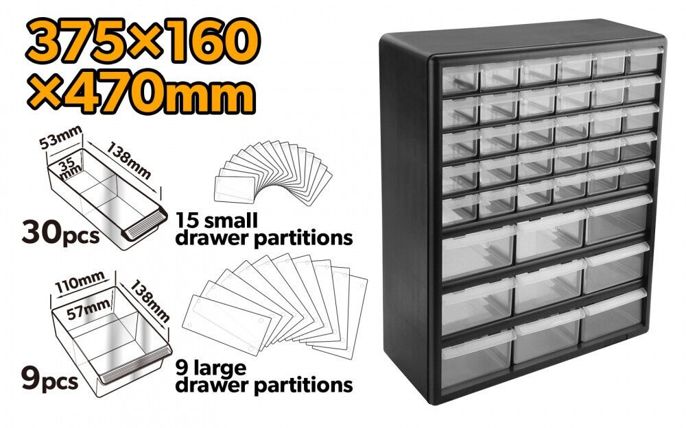Tip: organizator / Material: polistiren / Organizer: da / Opțiuni: 39 de sertare transparente pentru vizualizarea rapidă a conținutului