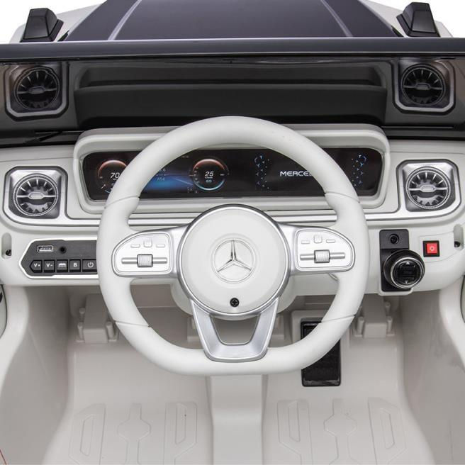 Această mașină electrică strălucitoare și elegantă este o copie exactă a unui adevărat Mercedes-Benz EQG, care fără îndoială vă va încânta copilul.