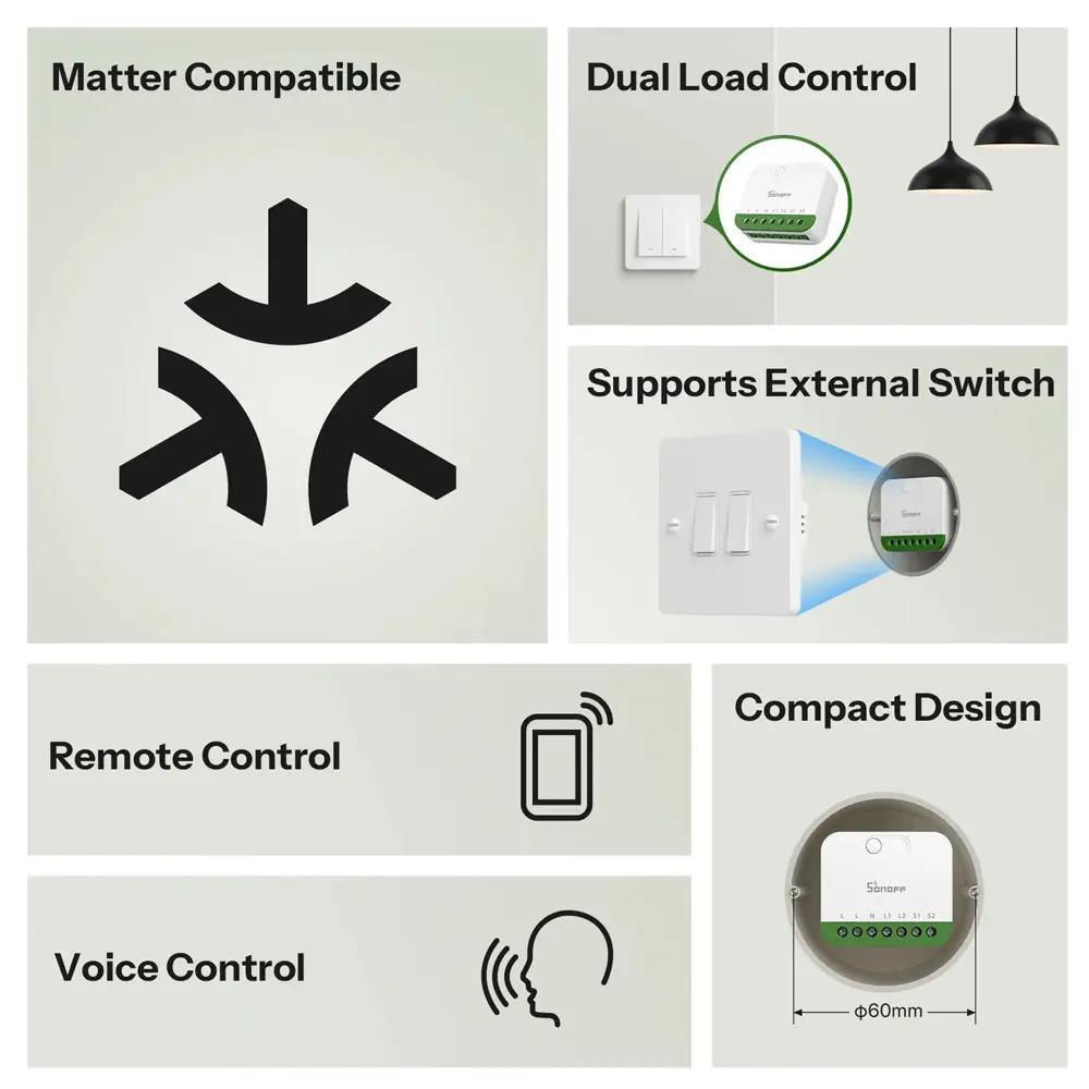 Întrerupător electric Sonoff Matter Over Wi-Fi Smart Switch MINI-2GS Mini Duo 2-Gang (Neutral Required)