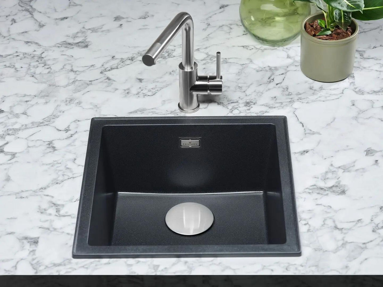 Materia primă: piatră artificială / Suprafaţă: piatră artificială / Numărul de vase: 1 / Gaura pentru robinet: da
