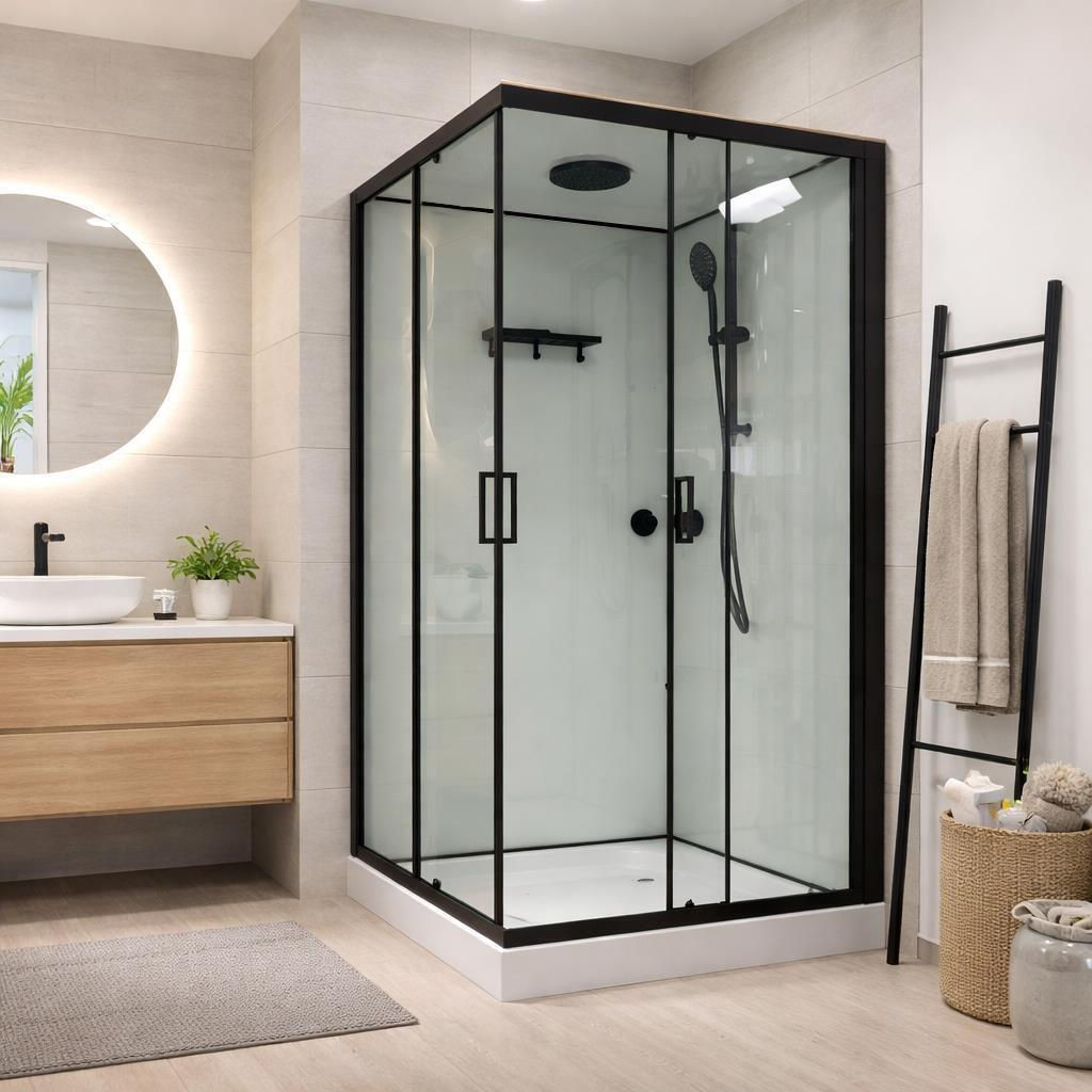 Cabină de duș Linia H2O Victoria Plus 900x900x215, 5 мм, квадратная, черный-мат