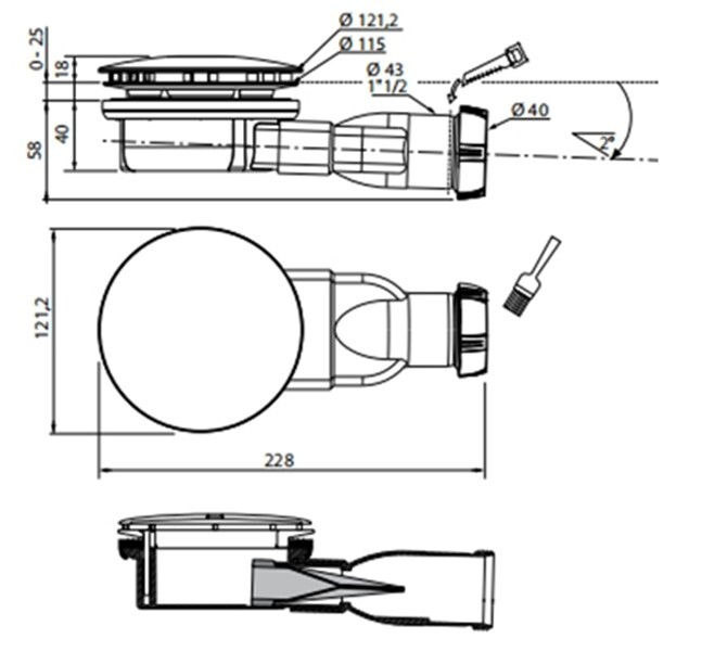 Тип: сифон для ванны / Пропускная способность, л/с: 0,56 / Диаметр сливного отверстия, мм: 120 / Бренд: Wirquin