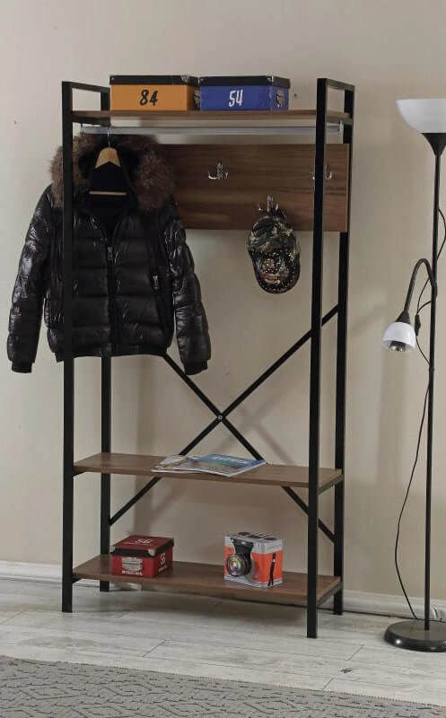 Тип: прихожая / Материал корпуса: металл / ДСП / Высота, мм: 1800 / Цвет: коричневый / чёрный