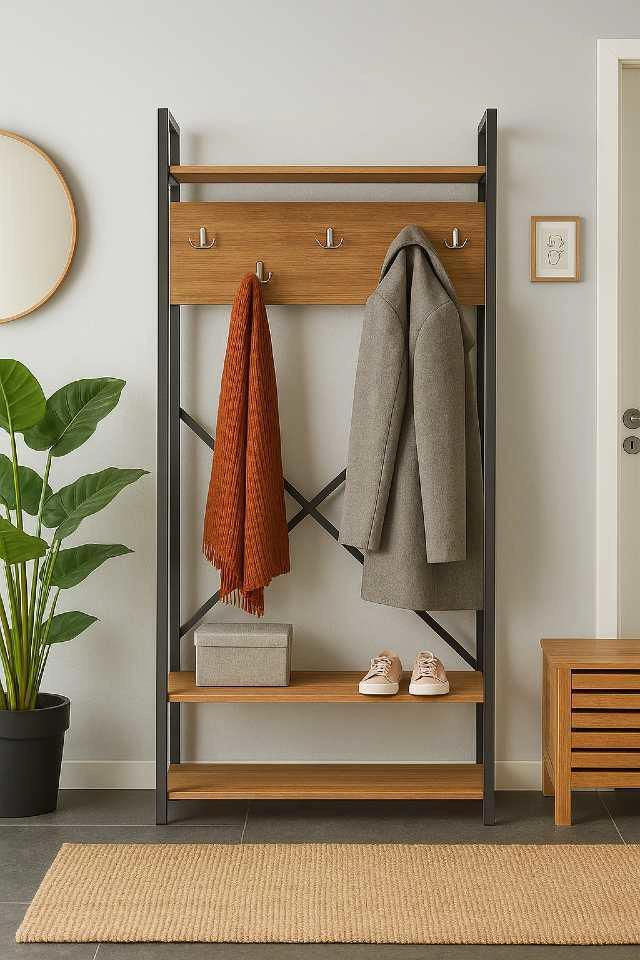 Тип: прихожая / Материал корпуса: металл / ДСП / Высота, мм: 1800 / Цвет: натуральный / чёрный
