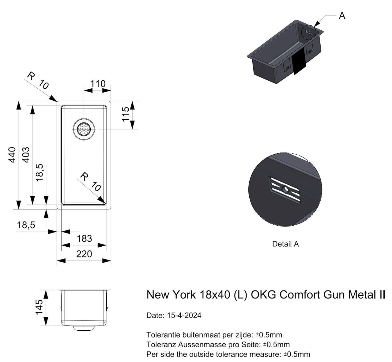 Materia primă: inox / Suprafaţă: inox / Numărul de vase: 1 / Gaură de scurgere: da