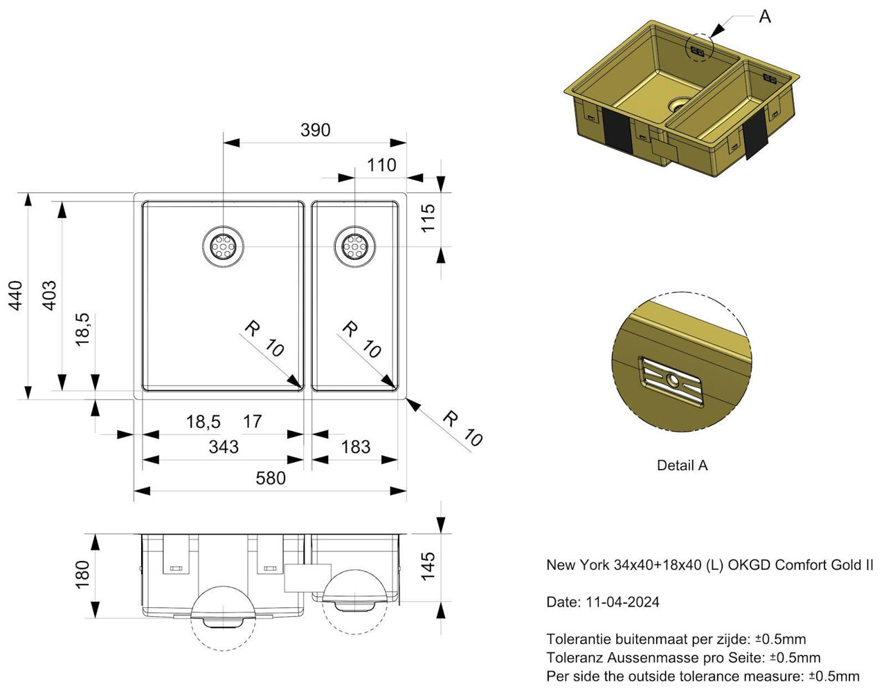 - Dimensiunile chiuvetei, cm 18x18,3-34,3x40,3